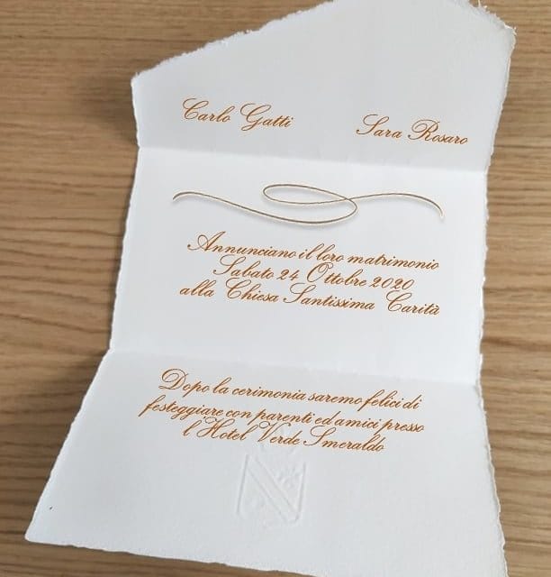 Partecipazione in carta di Amalfi LR con grafia in oro