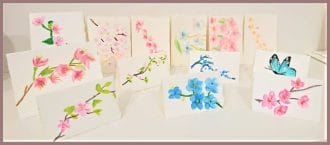 Our wedding fans delicately painted with the marbling technique.