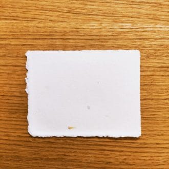 Realizzata in carta a mano di Amalfi nel classico colore avorio seguendo il tradizionale processo e con l’aggiunta, durante la fase di produzione, di petali di fiori tipici della flora mediterranea della costiera amalfitana.