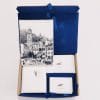 La carta di Amalfi presentata in questa speciale scatola come preziosa idea regalo realizzata in cartone con al suo interno applicazioni di velluto blu.