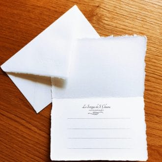 Ogni foglio di carta che compone questo set regalo è creato singolarmente in modo del tutto artigianale con tutti i bordi sfrangiati seguendo i tradizionali processi di produzione e le regole trasmesse dagli antichi cartai amalfitani che ne hanno tramandato le regole fino ad oggi.