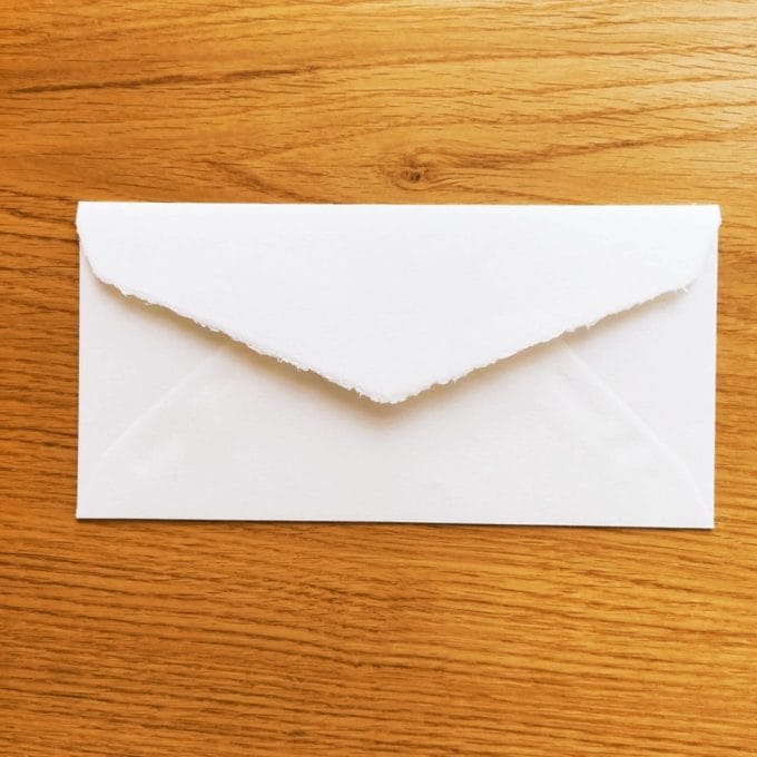 Ciascuno dei lati di ogni busta presenta i caratteristici bordi intonsi di questa carta, compresa la pattina di chiusura la quale è precollata e sulla quale non è presente alcuna filigrana.